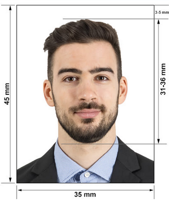 - Distance between the upper edge of the head and the upper edge of the photo is at least 3mm.