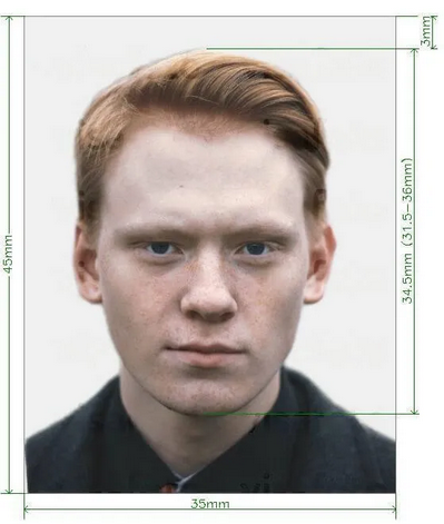 - The head should occupy a minimum area of 2.5 cm and a maximum of 3.5 cm.